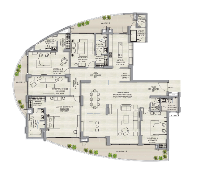 4 BHK + Lounge